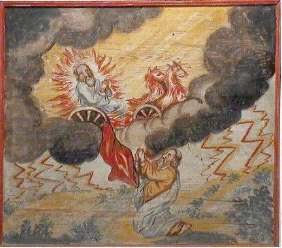 Elia fährt mit dem Feuerwagen zum Himmel.
