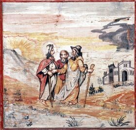 Und der Herr erschien ihm in Hain Mamre, da er er saß an der Tür seiner Hütten da der Tag am heißesten war. Und als er seine Auge aufhat, und siehe, da standen drei Männer gegen ihn. Und da er sie sah lief er ihnen entgegen, von der Tür seiner Hütten und bückte sich nieder auf die Erden, und sprach: Herr hab ich Gnade gefunden vor deinen Augen so gehe nicht an deinem Knecht vorüber. (1. Moses 18,1-3).